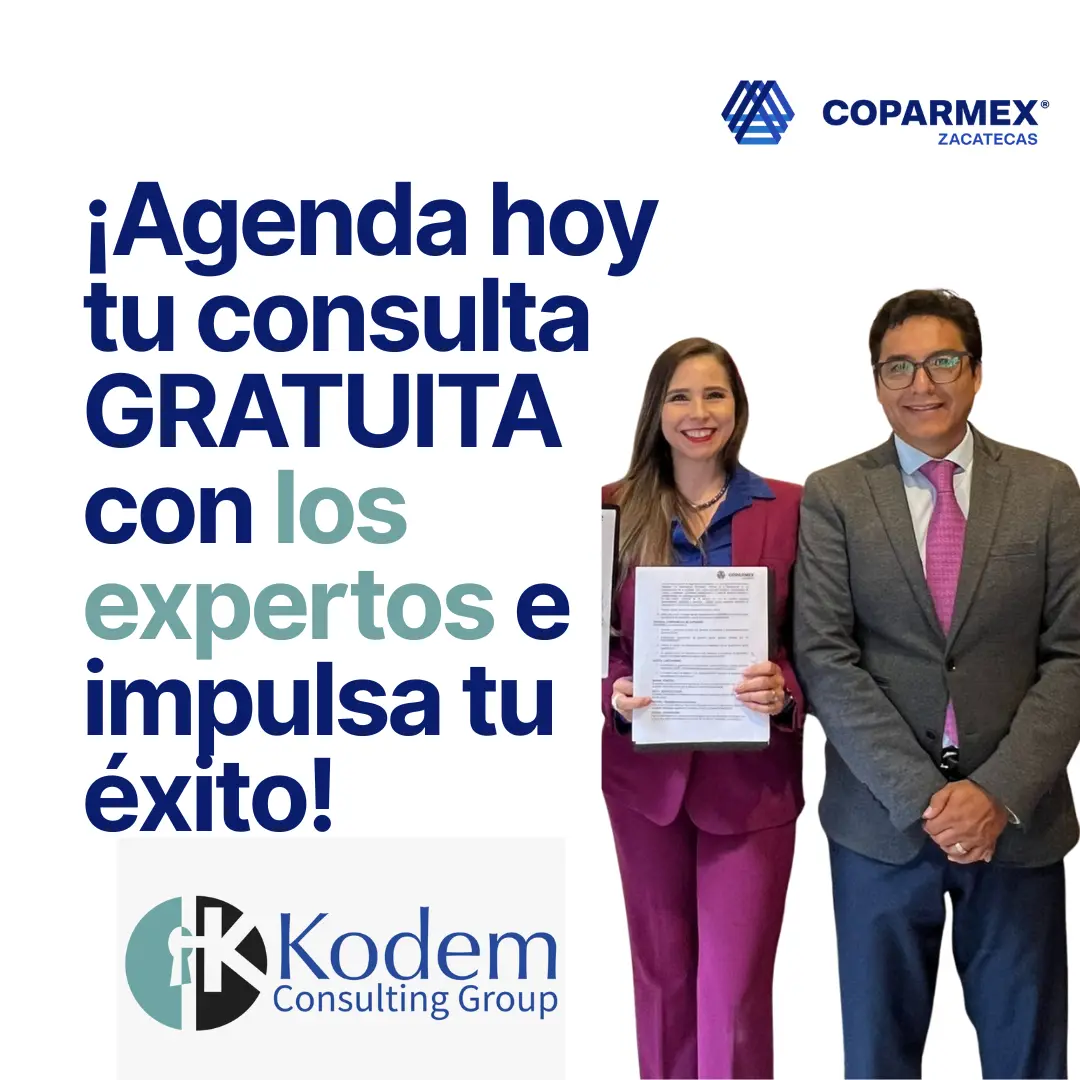 En COPARMEX Zacatecas entendemos que el crecimiento de tu empresa requiere de una visión estratégica y un equipo humano fuerte. Por eso, hemos establecido un valioso convenio de colaboración con Kodem Consulting Group.
