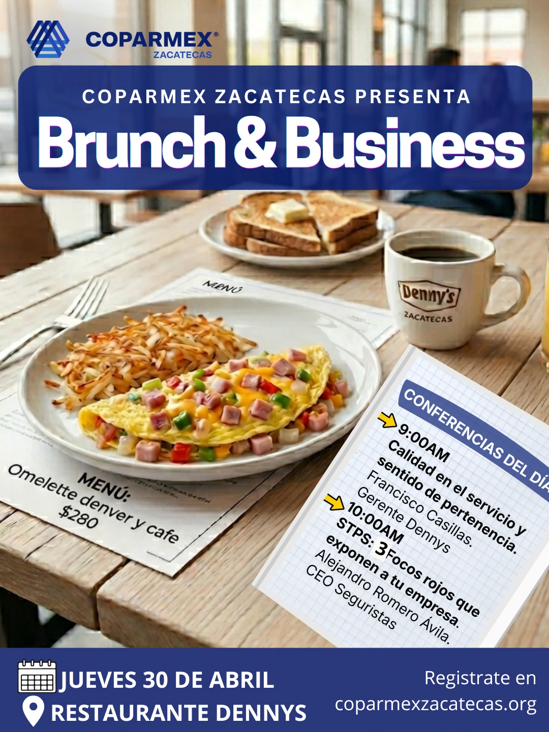 🍳 Incluye: Omelette Denver, café ilimitado y sesión de networking.